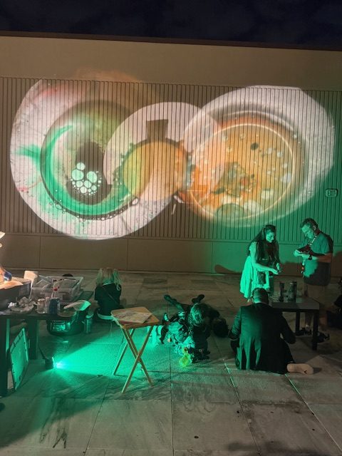 Sunday was a more relaxing day. We slept in and had lunch at Gus’ Famous Fried Chicken that was right next to the food court. He said it was the best fried chicken he had ever eaten. We both decided it would be our new tradition for a lunch date at Dragon Con. That evening, we wandered around and went to a magic show featuring Jon Armstrong. It was a delight. After the show we stumbled upon a new event I didn’t know existed called Liquid Light Guerilla Strike. It was artists using a projector with water and color to create images on a screen. The music was ambient and haunting with a DJ and live violinist. The patrons of the event were relaxed and chill laying down watching the light show.