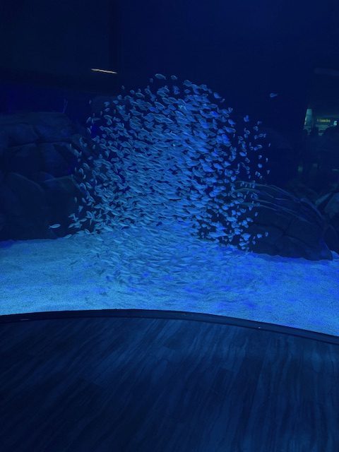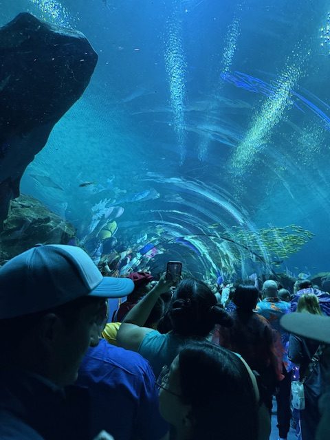 Saturday morning, he had chosen to go the video game costume contest. We found our way over to the Westin and waited in line and made our way to our seats when the doors opened in the ballroom. The costumes were great, I was a little lost as to who they were since I am not really a gamer, but my fiancé was in awe being that he is. Saturday evening, we had VIP tickets for the Night at the Aquarium. The VIP room was amazing and he was excited that the private ball room was set aside for us. The food was delicious. There were even waiters bringing around gourmet grilled cheese and moon pies. The DJ was spectacular playing classic 90’s tunes that had the dance floor buzzing. The Aquarium was also his first cosplay. He chose to dress up as Gojo from his favorite anime. We grabbed some drinks and began to wonder the aquarium. It was such a fun evening. His favorite exhibit was the walkway where you are walking in a tunnel with all the sea life and whale sharks swimming all around and over you.