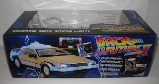 Packaging: The DeLorean comes in a well done window box. It has a clear panel on the top and front that show off the vehicle. The graphics look good, but it is odd that Doc and Marty are absent.